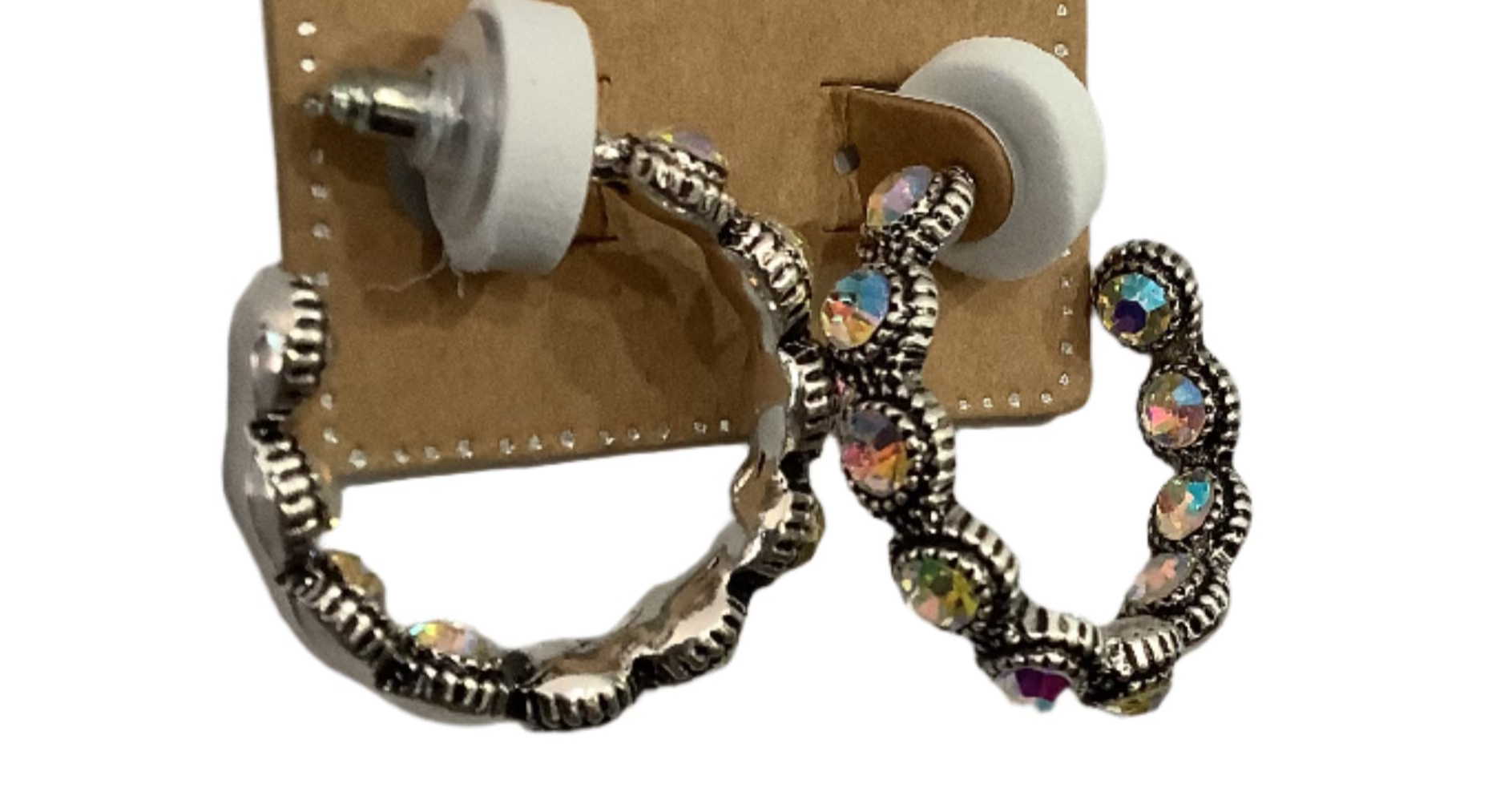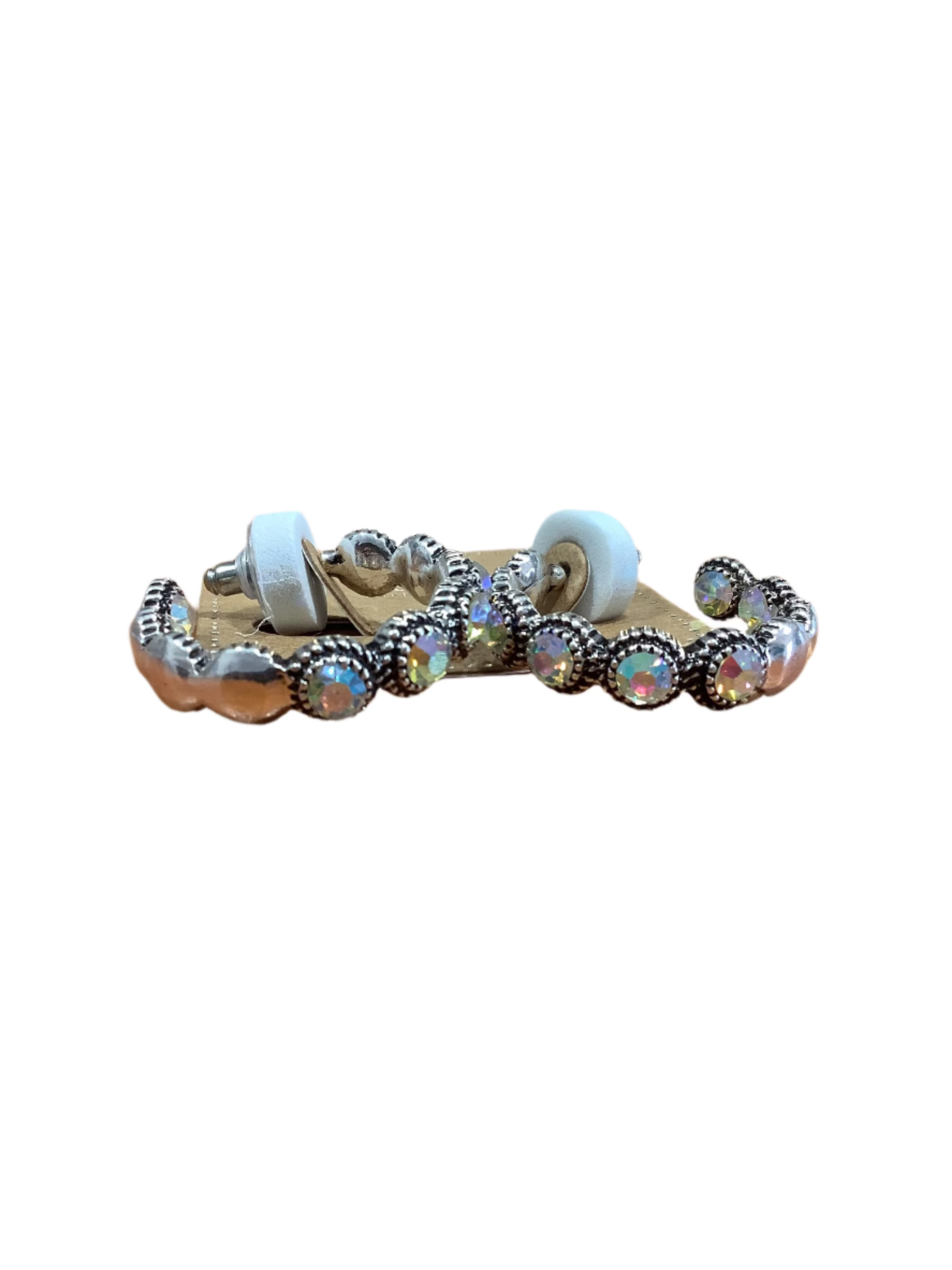 Glam up your look with these stunning rhinestone hoop earrings! Beautifully crafted with shimmering iridescent rhinestones set within a polished silver-tone metal, these earrings elegantly blend sparkle and charm. Their scalloped, beaded-edge detail provides an eye-catching touch, ensuring these hoops catch the light beautifully from every angle. Lightweight and comfortable for everyday wear, they make the perfect accessory for special occasions or to effortlessly elevate your casual style. A wonderful addition to your jewelry collection or a dazzling gift for someone special!