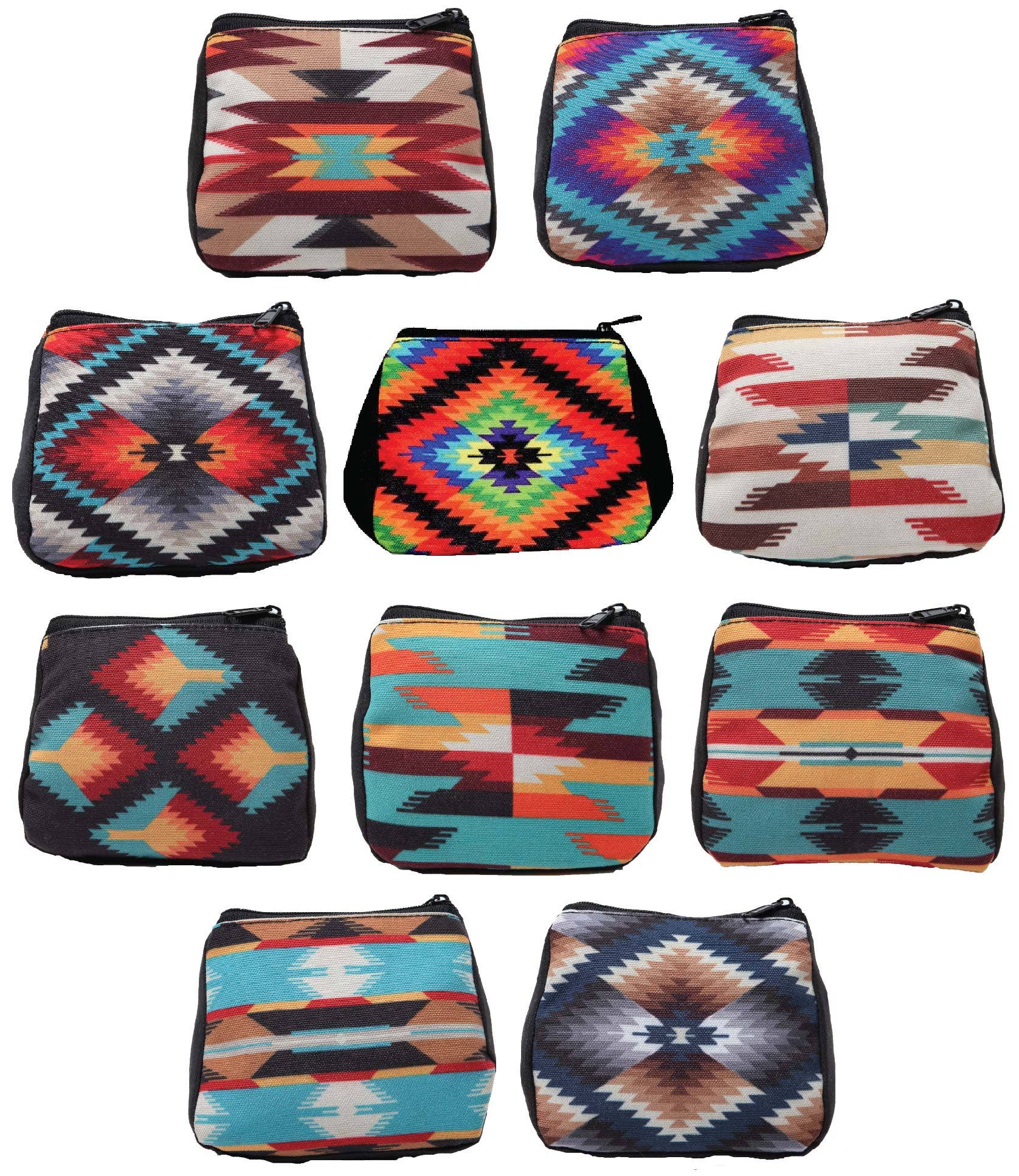 Southwest Contemporary designs digitally printed on 100% polyester Zipper Closure Apx. 4" x 5" Shipped assorted.