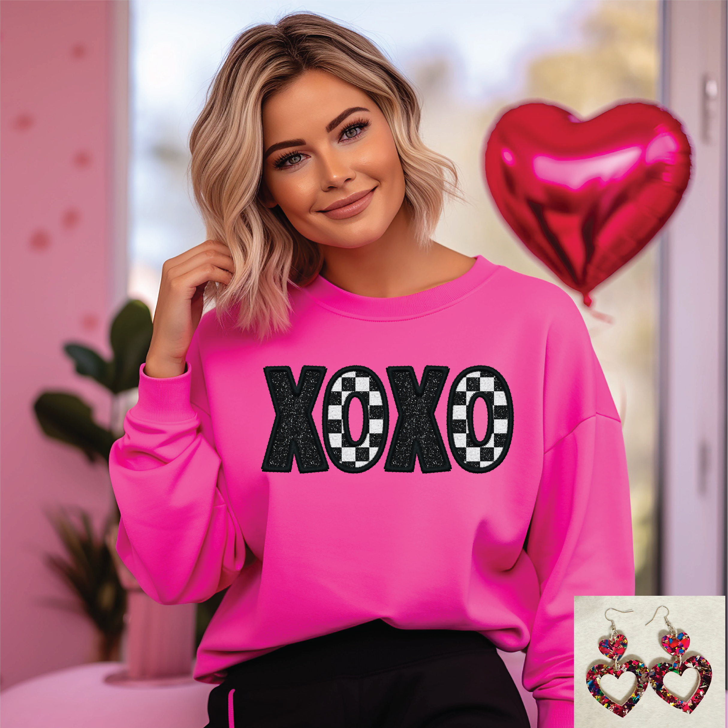 DTG on a Heliconia Gildan Sweatshirt Sweatshirts are a unisex fit. Tshirts also available in Charity Pink Pairs perfectly with our Heart Dangle Earrings Sweatshirts are long sleeve while tshirts are short sleeve. THIS IS A FAUX GLITTER AND FAUX STITCHED LOOK. NO ACTUAL GLITTER OR STITCHING WILL BE ON THE SHIRT.